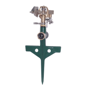 Brass Impulse Sprinkler with metal step spike, end cap and brass swivel nut
